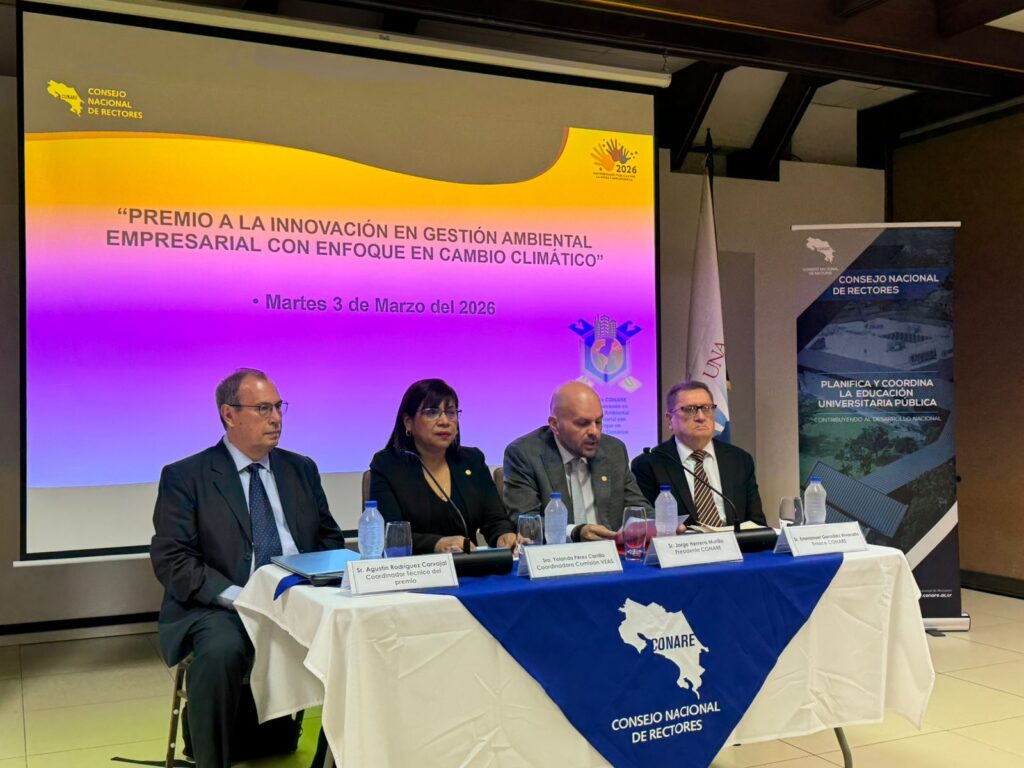 El Consejo Nacional de Rectores (CONARE) anunció este martes la apertura de la convocatoria del Premio a la Innovación en Gestión Ambiental Empresarial con enfoque en Cambio Climático 2026, una iniciativa que reconoce a empresas públicas, grandes empresas, MIPYMES, asociaciones, cooperativas y otras organizaciones que implementan soluciones innovadoras frente al cambio climático.