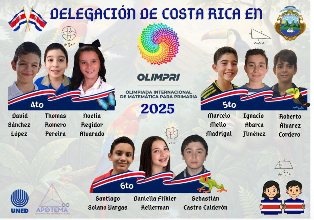 - Siete niños y dos niñas representarán a Costa Rica en la VI Olimpiada Internacional de Matemática para Primaria (OLIMPRI).