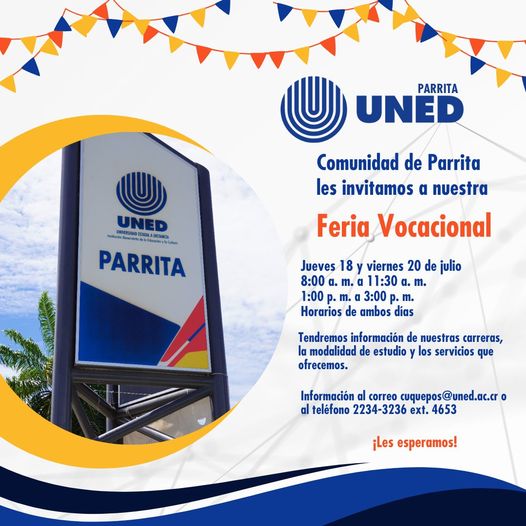 En la feria se ofrecerá información de las carreras, de la modalidad de estudio y de los servicios universitarios. Más información en el correo cuquepos@uned.ac.cr o al teléfono 2234-3236 ext. 4653.