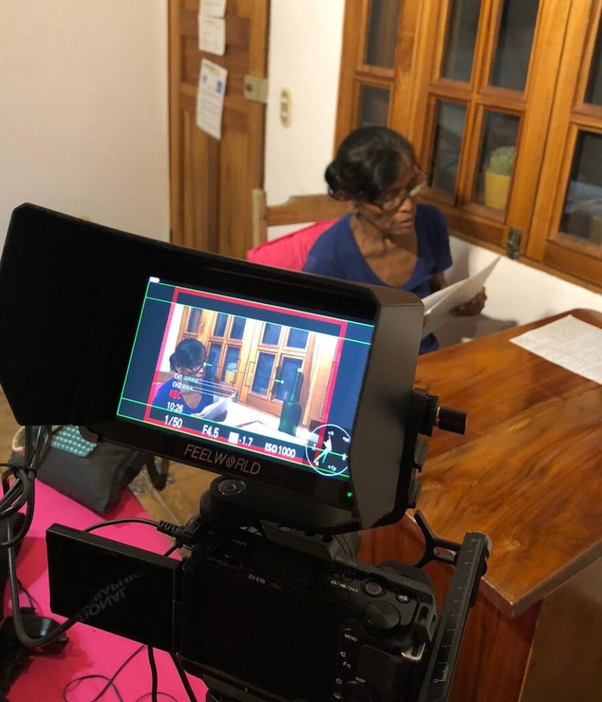 Doña Juanita en el proceso de grabación con Audiovisuales UNED